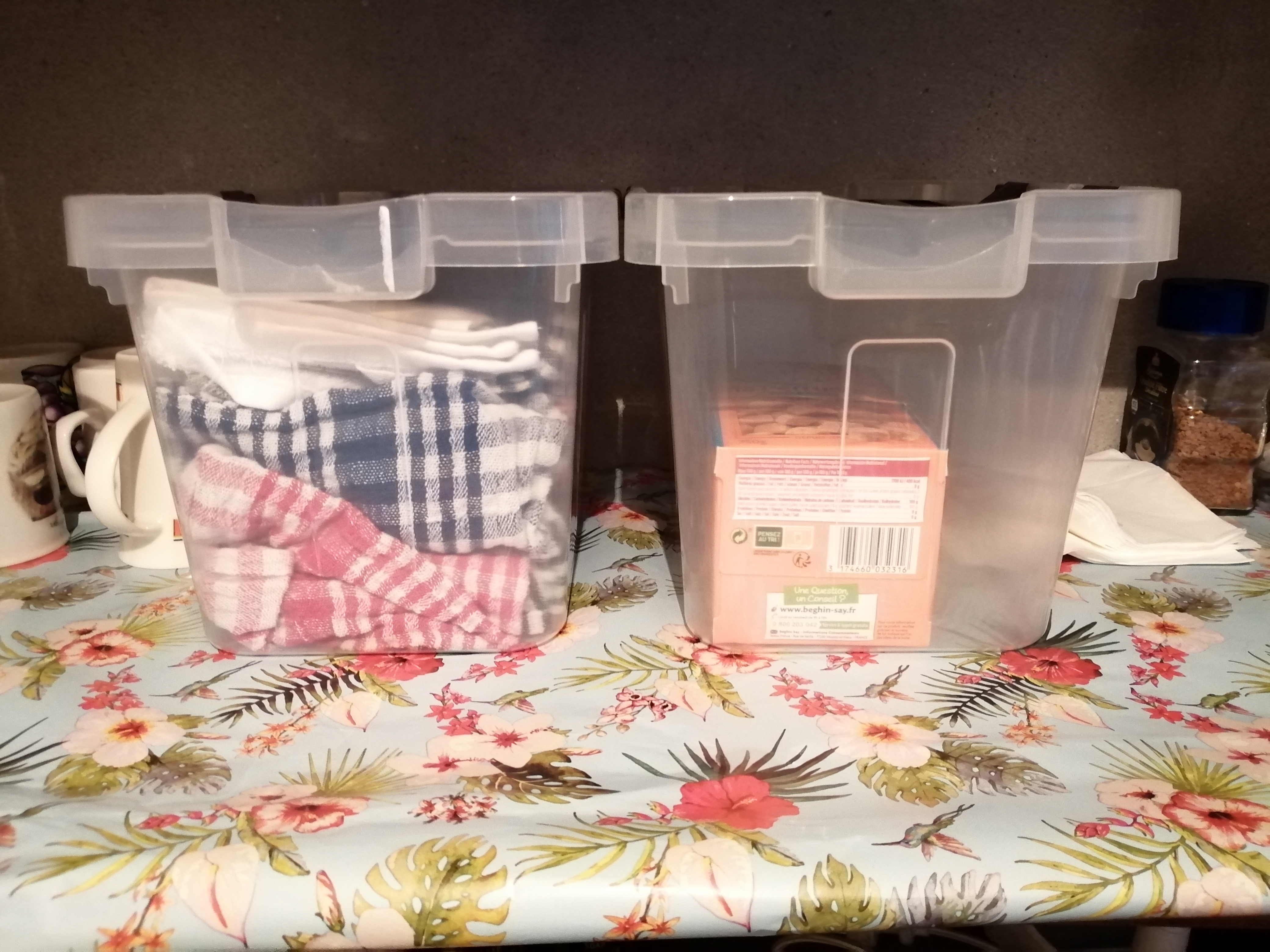 Keeping bedding immaculately clean is essential when running any form of hospitality business. To aid with this, we decided that actually putting clean sets of bedding in plastic tubs would ensure dust cannot settle on anything. At the same time I have organised each set of bedding into a pillow case so that when I take one to make up a bed I am ensured that I will have everything I need to make a bed. This is a trick that a cleaner I employed years ago taught me.