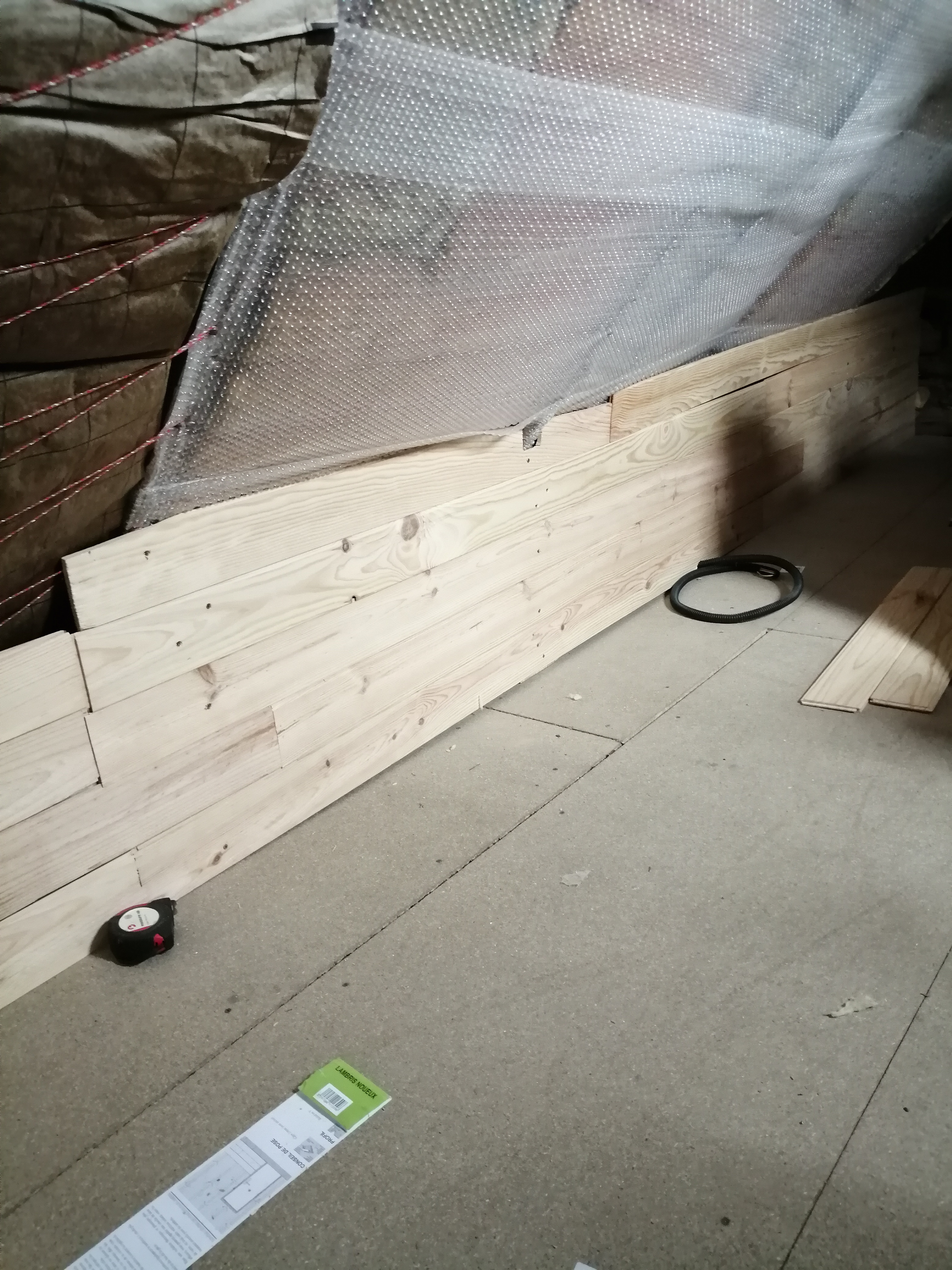 So our loft area is boarded and mostly insulated however it is not what could be called a room at the moment. The layout of our cottage is such that at the moment we only actually have one bedroom. What would have once been a bedroom is our lounge because our kitchen is big enough as a kitchen diner, but not large enough to use as a lounge as well. I am hoping that our sons will be able to come over at some point this year. So sorting a comfortable space for them is becoming a priority. Whilst it might not appear that much was achieved today, significant progress has been made. At the same time a good deal of rubbish and items that need to go to the shed have been removed thus making it easier to move and work in the space. I am hoping that over the next few days we may make some further progress here. There will be a stage in which it will resemble a Swedish sauna; however we will be painting it and furnishing it so that it doesn’t!