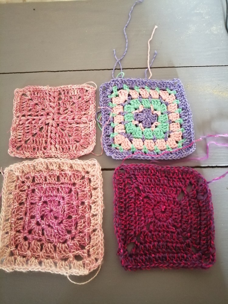 I have a client that has asked me to make a poncho for his mother. I decided that I might try some different styles of granny squares for this project. At the moment I haven’t decided quite what I am doing or how I’m going to do it. However these are some of my initial squares that may or may not make it into the final project.