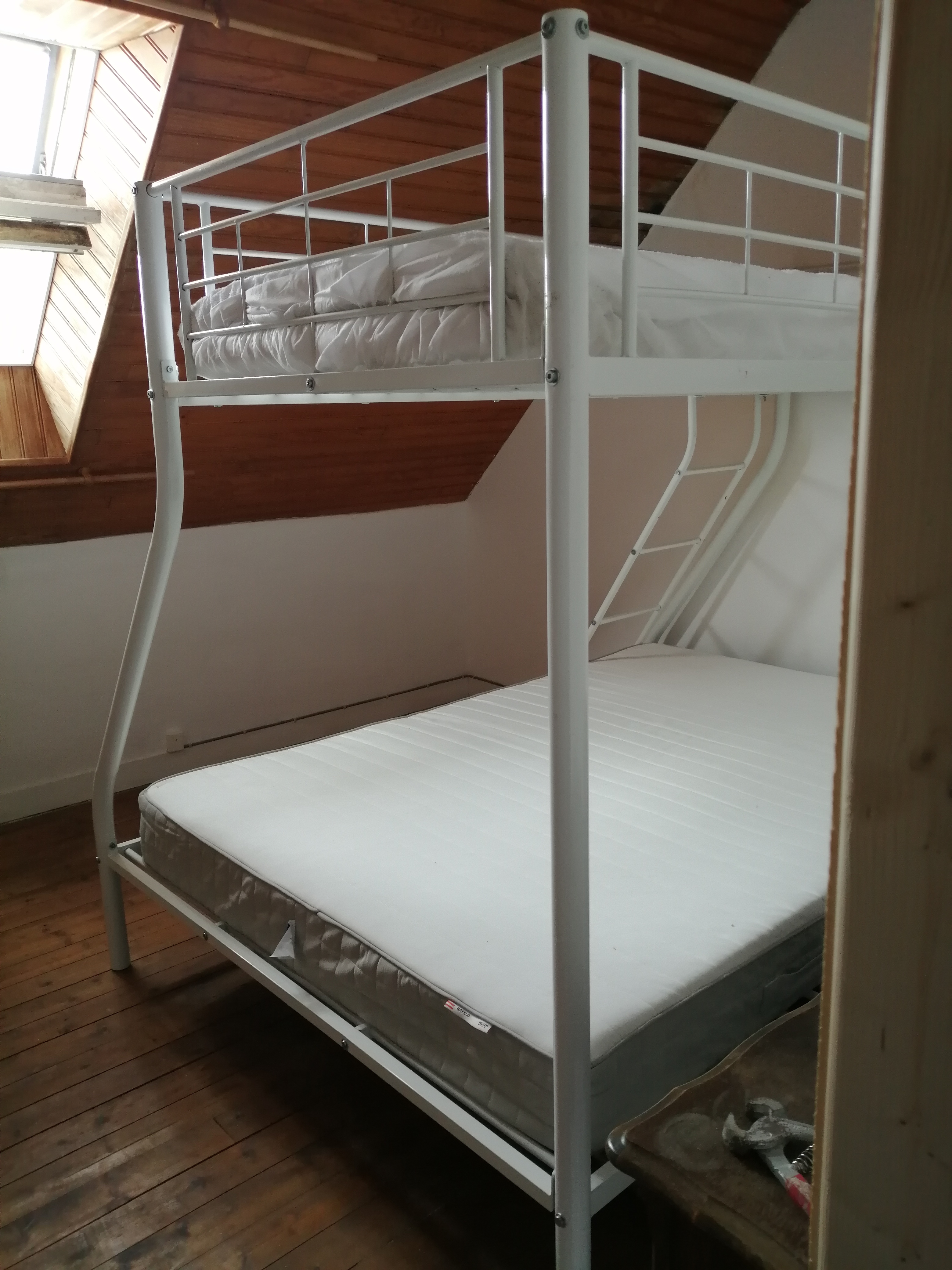 Today we spent 5 hours moving beds at the gite. I’d like to say that all of the beds have been moved but no they haven’t. We have a bunk bed that is a double on the bottom with a single on the top. It needed to move rooms. This is considerably easier said than done. It needed completely taking to pieces including the poles that create the base for the mattresses. So this takes a considerable period of time. My husband was concerned at one point that it wasn’t going to fit into the room where we were putting it but I had spent some time measuring and was certain that it would fit. I’m very glad to report that it does fit and will now remain there.