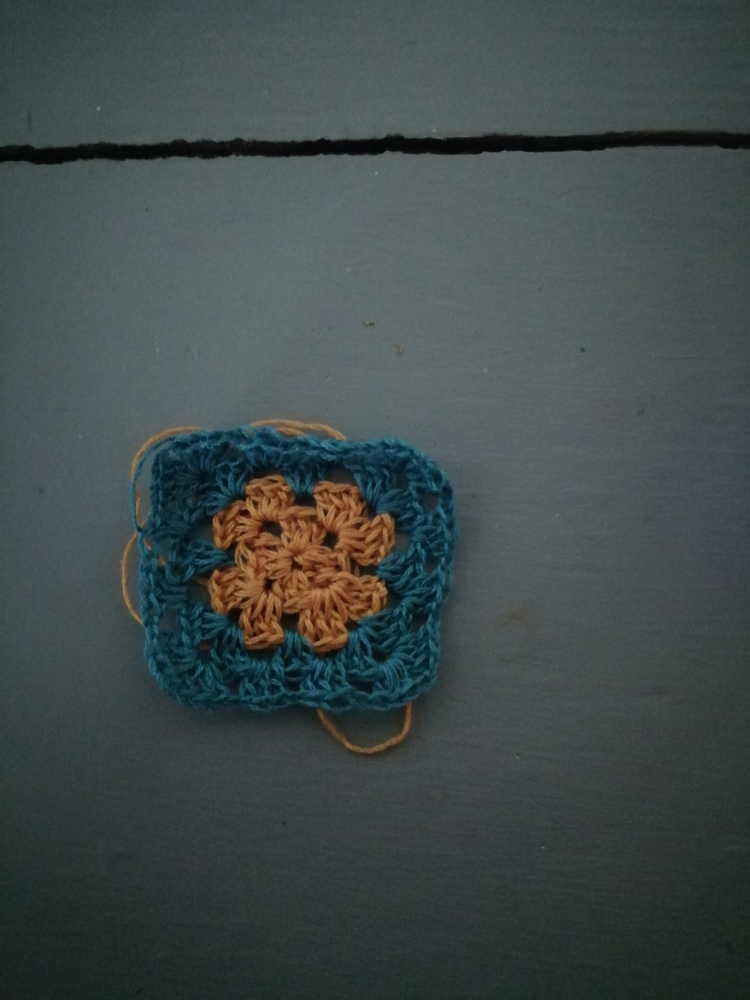I received an email today which was headed up crochet and mindfulness. I was very keen to get to read it. I don’t think that it told me anything that I didn’t already know but it was a lovely reminder that crochet, along with a number of other creative activities, can be mindful because it is necessary to become so engrossed in the activity. Last night I did make something with the threads I showed you yesterday. The teal and gold square is made from the thread and will become the centre of a necklace. I’m not sure how much I will do with the threads because you need really good light and to be feeling perky because with such fine thread and such fine crochet hooks it is really quite difficult. I used some thicker yarn later and made a couple of granny square brooches. The hook was much smaller than I normally use though not as small as is needed for embroidery thread. I have nonetheless found a pattern for earrings which I am tempted to try, so watch this space.