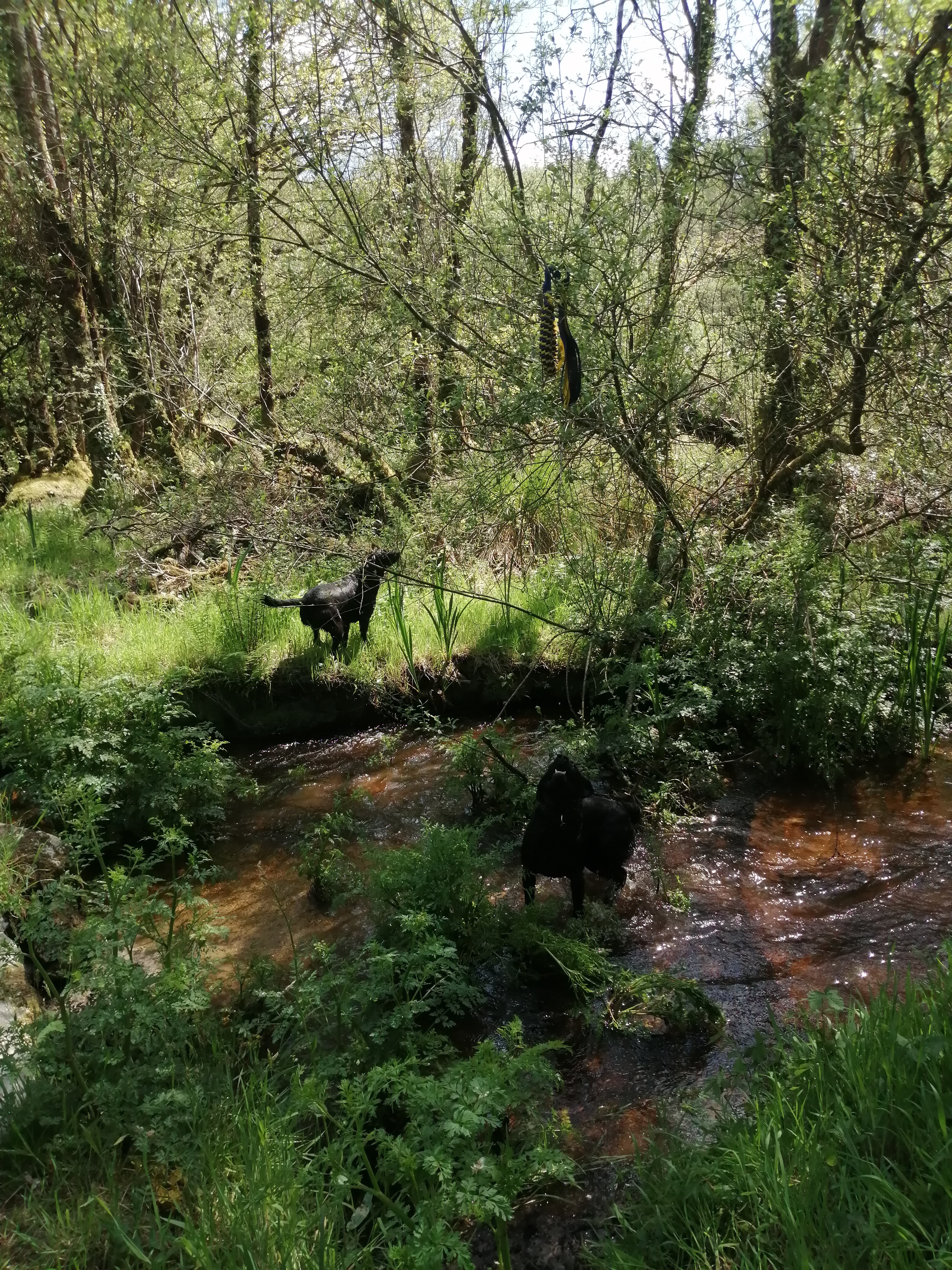 It seems that the weather is really changing now and we have had a certain amount of sunshine for several days. It would seem that this has resulted in things really suddenly growing. When I walked to the stream with the dogs this morning it was lovely to see the array of flowers which were set within dense green foliage. My toy throwing is not particularly good and at one point the toy ended up in a tree. I was amazed to watch Archie jump for it and manage to rescue it. It’s one of those things that you don’t have your camera at the ready when you really need it.