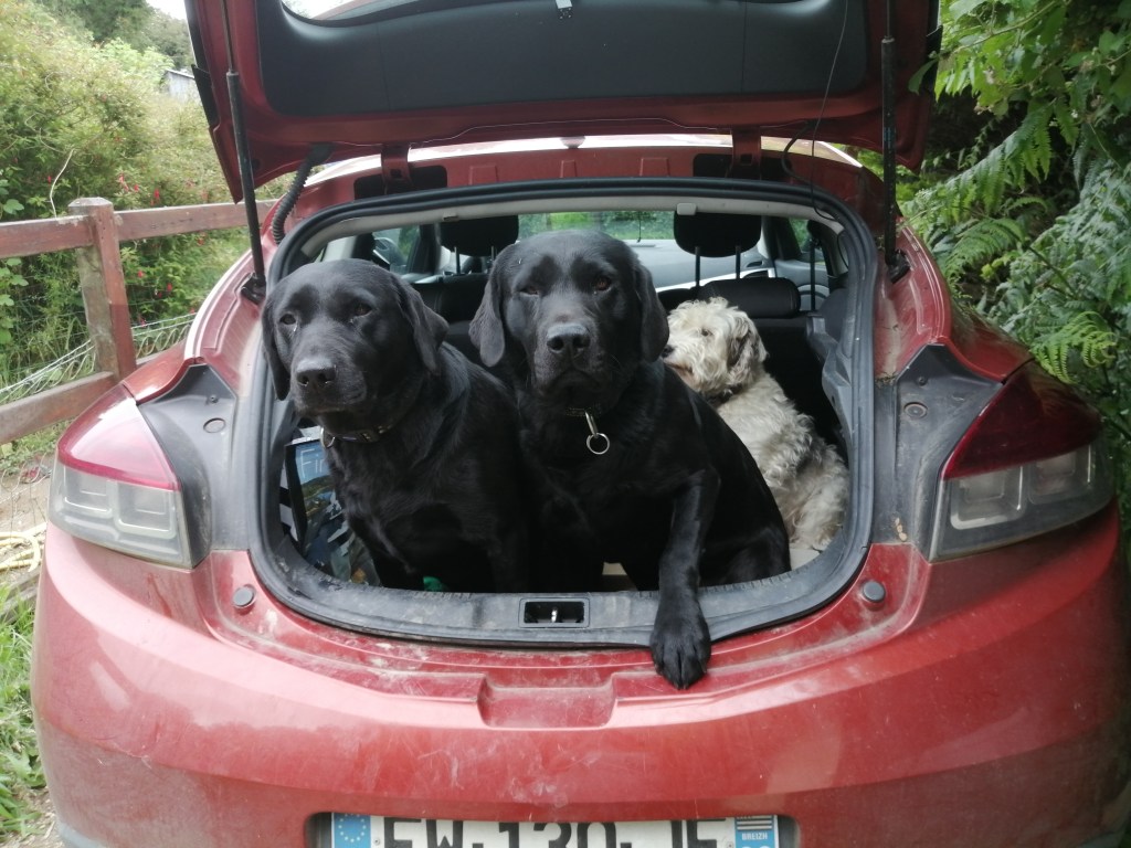 I went shopping this afternoon. When I got back I let the dogs out. The boot to my car was still open so they all hopped in. I think they were a little disappointed!