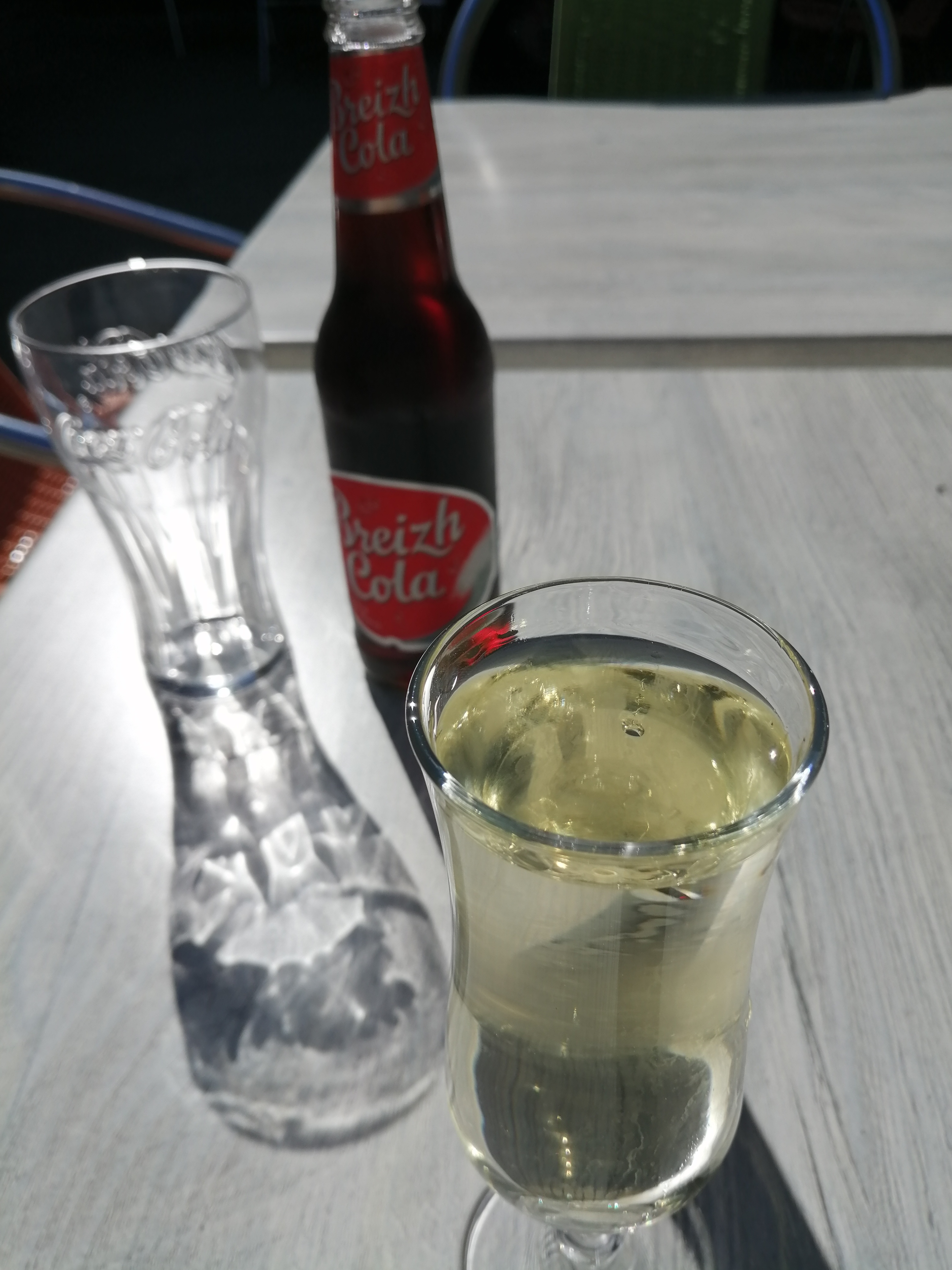 I am now sat outside enjoying the sunshine at our local bar enjoying a glass of wine whilst they cook a pizza for my son. Here they prefer if you make an order and say what time you would like it. However we have seen our guests in for this evening and don’t want to keep driving back and forth. Given that my son has been doing the driving, partly because of my back and partly because he enjoys driving a sportier car than his! This means I get the glass of wine and he gets a coke. I do love the fact that Brittany, known as Briezh in Bretton, has its own cola. He’ll have some beer when we get home.