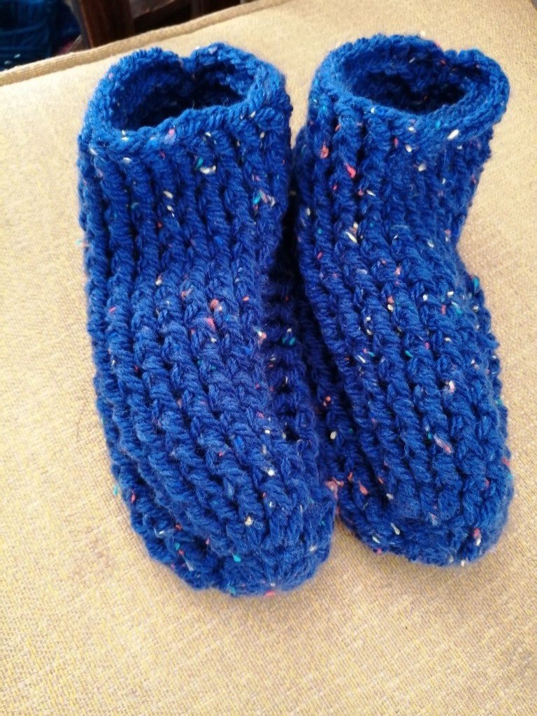 I finished a pair of slippers last night. They were supposed to be adult size but they most definitely aren’t. I shall start on some others later.