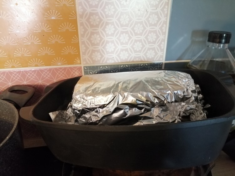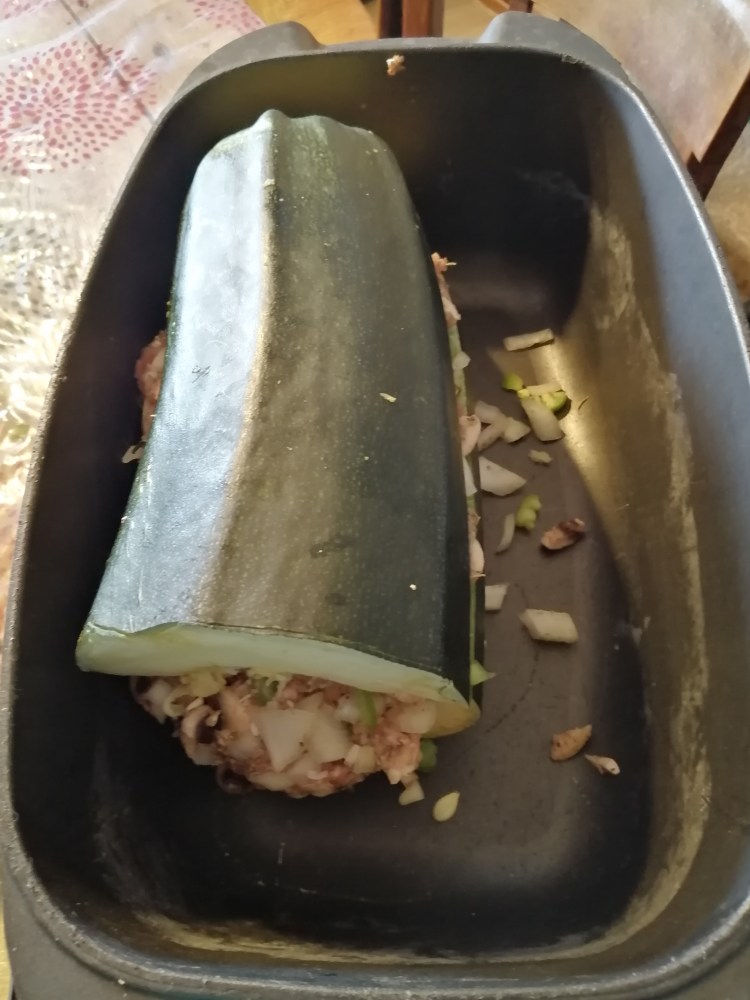This afternoon was about taking my mother out. Beforehand I decided to prepare dinner, so that I didn’t need to do it this evening. My husband has allowed one of his courgettes to develop to marrow proportions. Earlier in the week we had half of it in a ratatouille. Today we are having the other half stuffed. It is now baking in the oven and even if I say so myself it’s smelling rather good.