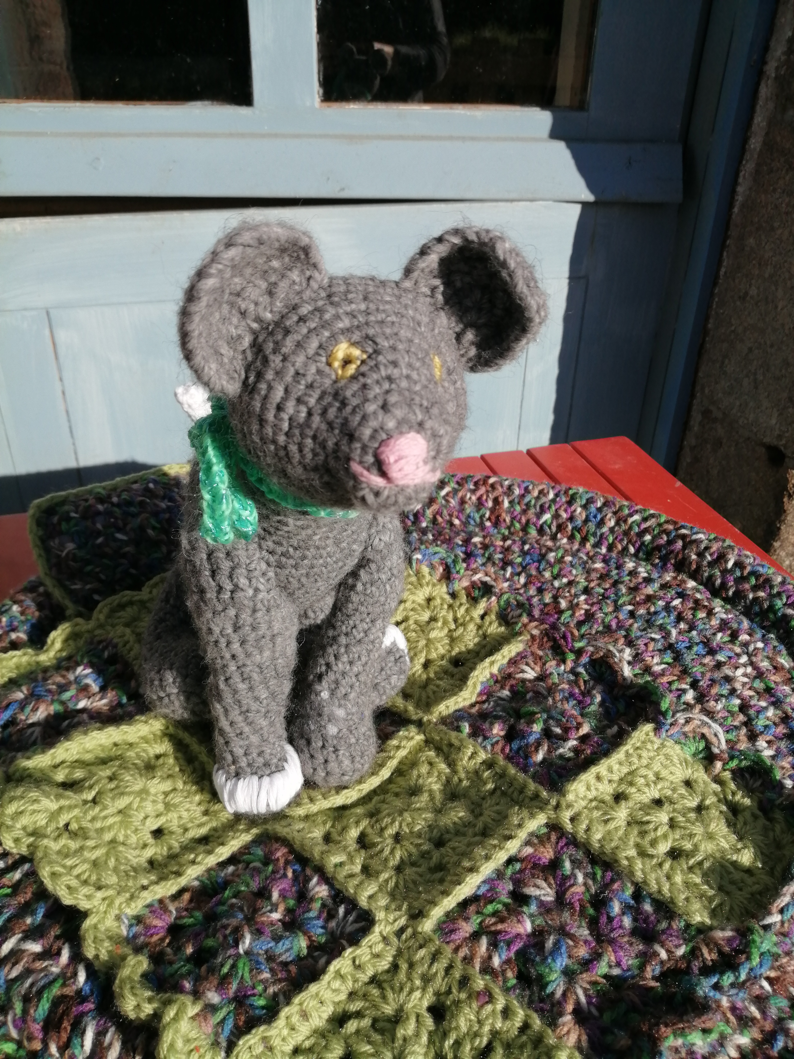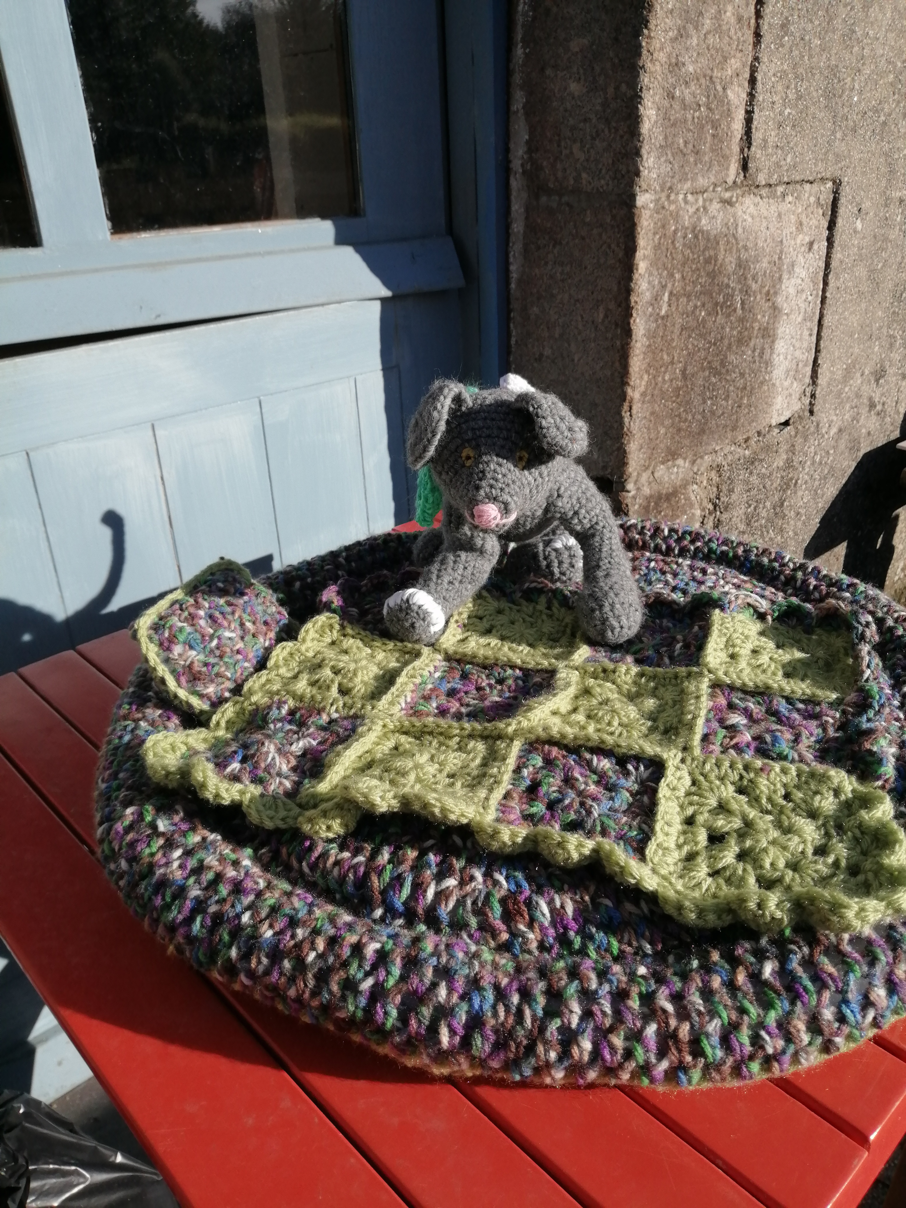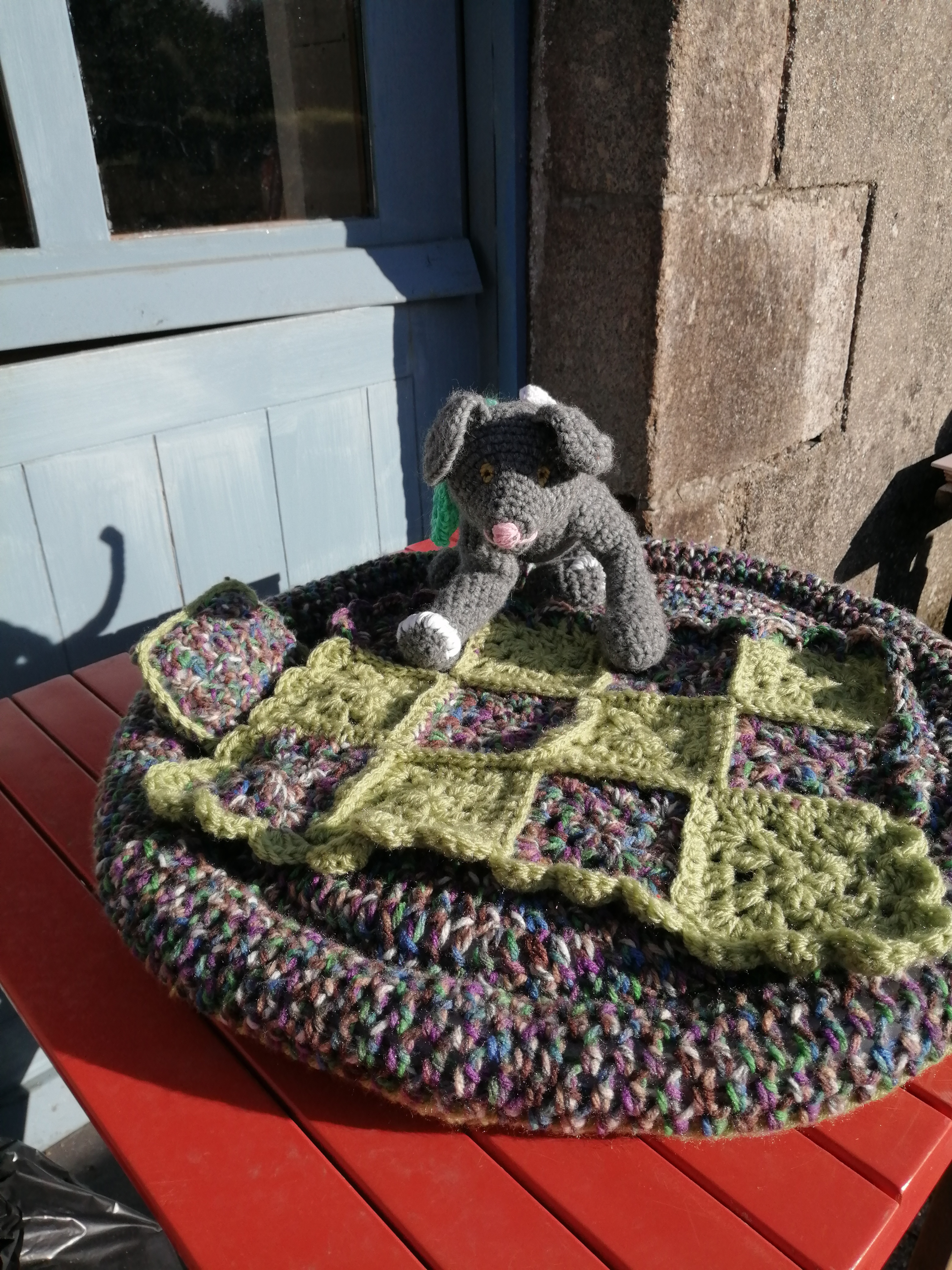 I did manage a little time outside. Puss, so named by my husband, is starting his modelling career! He can be seen sat in a bed I finished last week. I have managed a few rows of the gilet too. I need to get on with it, I have another order behind it.