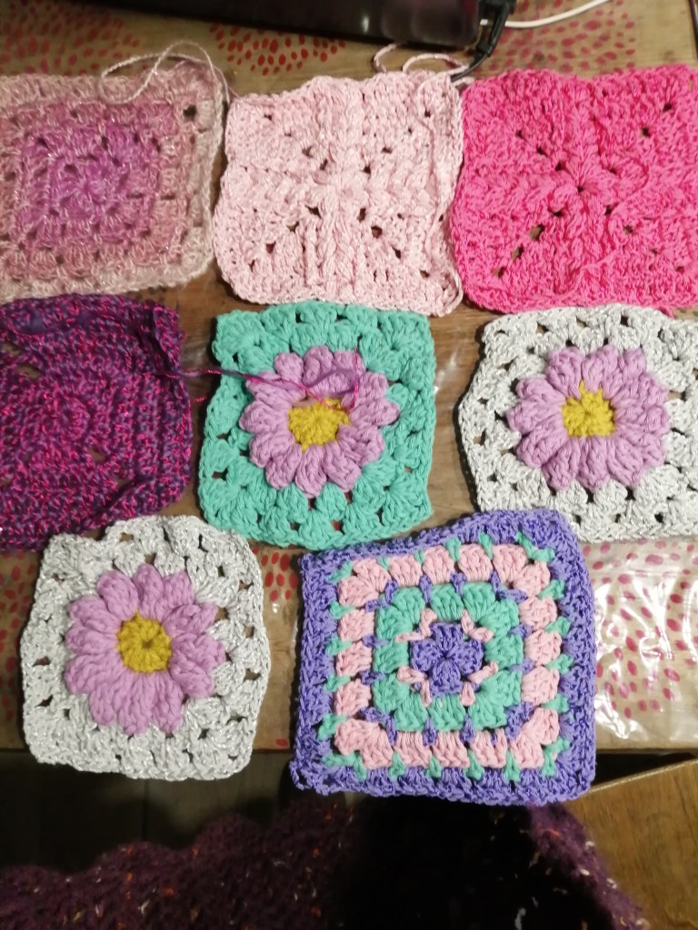 However first I will be going to a meeting about the Christmas tree. I haven’t done any more squares. However I discovered a number of squares that I made for a project but didn’t end up using, so I shall take them with me and see whether they want them.