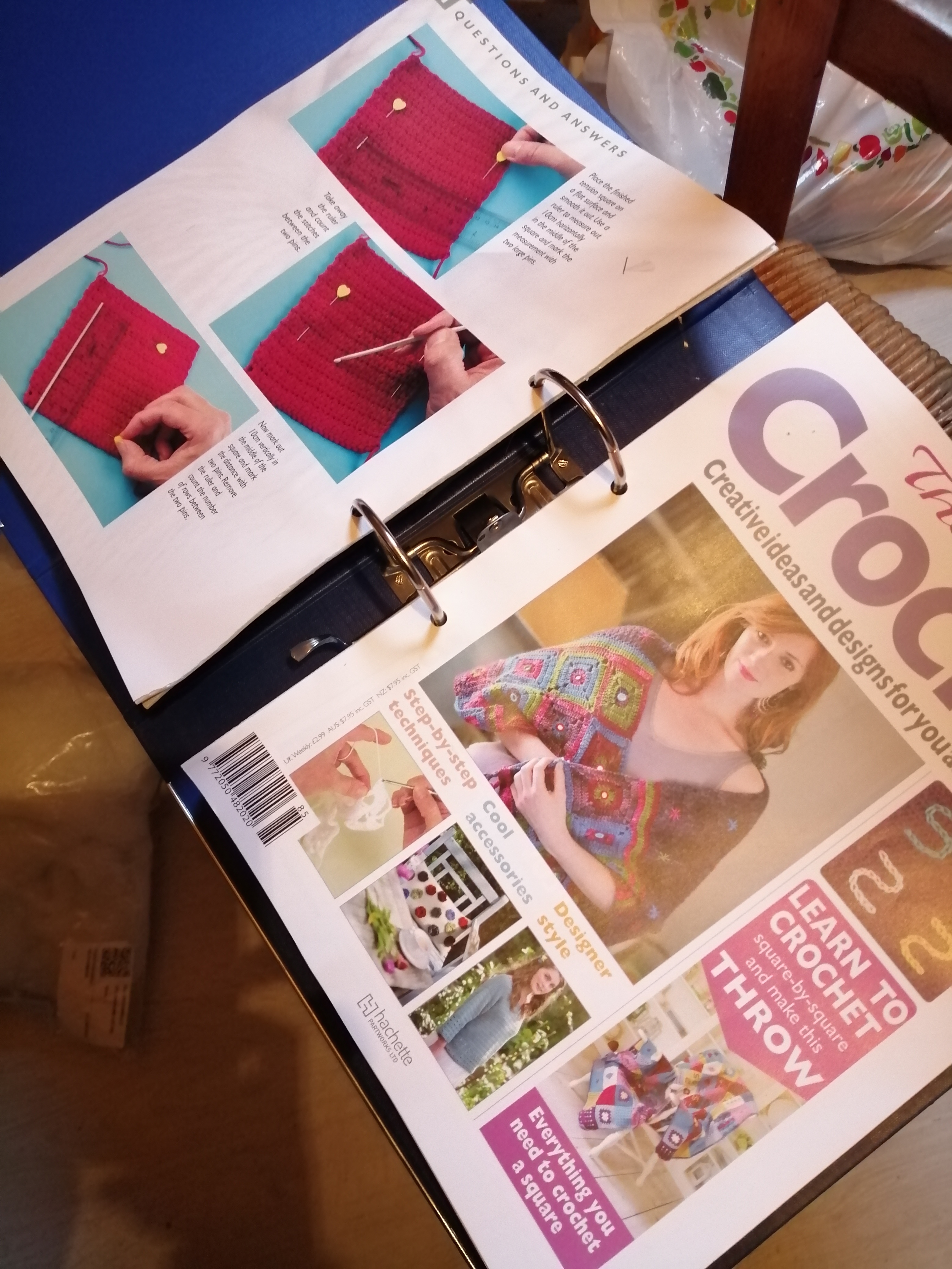 Several weeks ago I bought some unopened crochet magazines in a second hand shop. Today I finally got round to opening them and putting them into a folder so that I can go through them. There was quite a stash of yarn to be had with them which is also really good. This evening I may be sitting down with the folder to see what’s there.