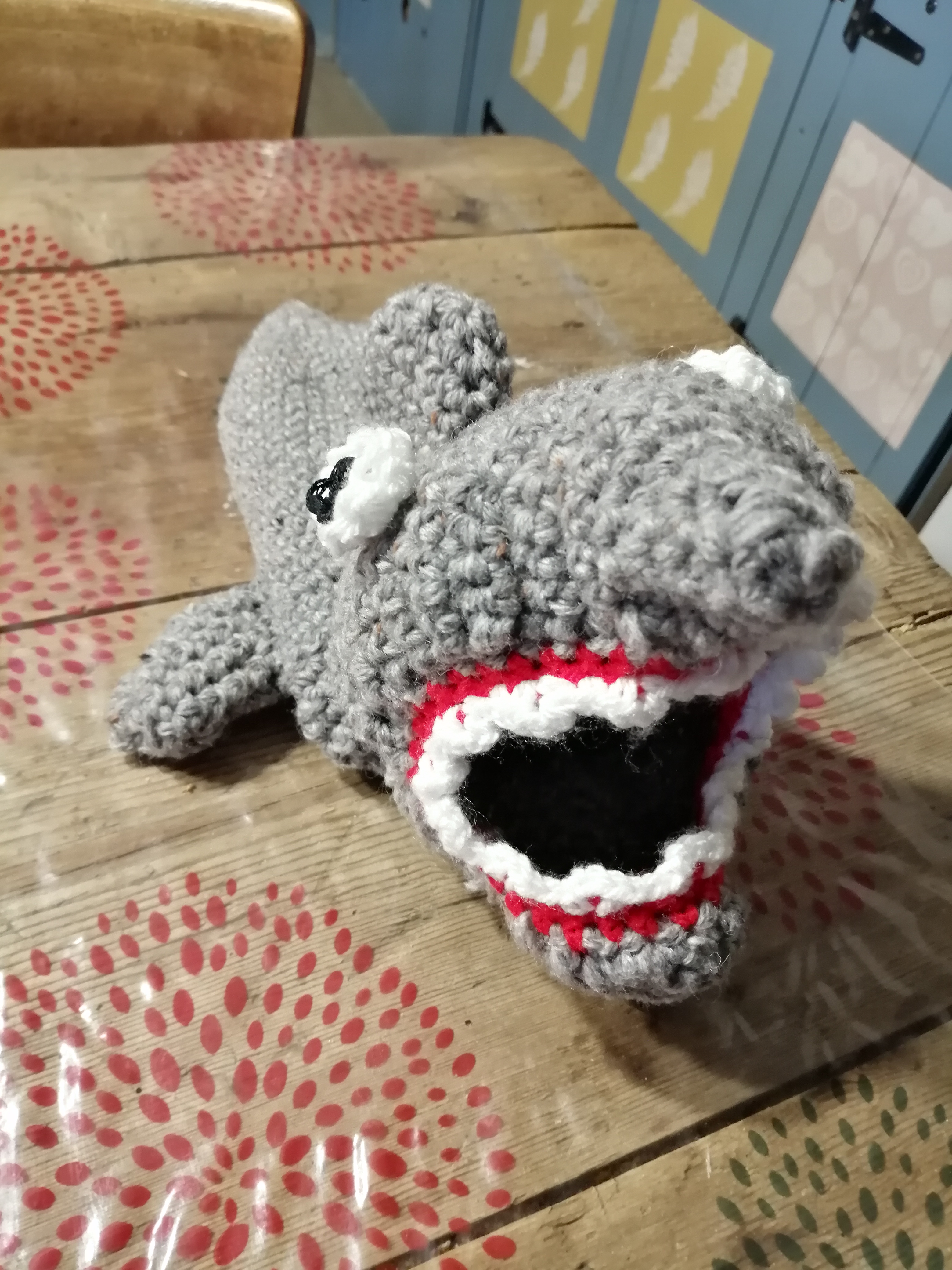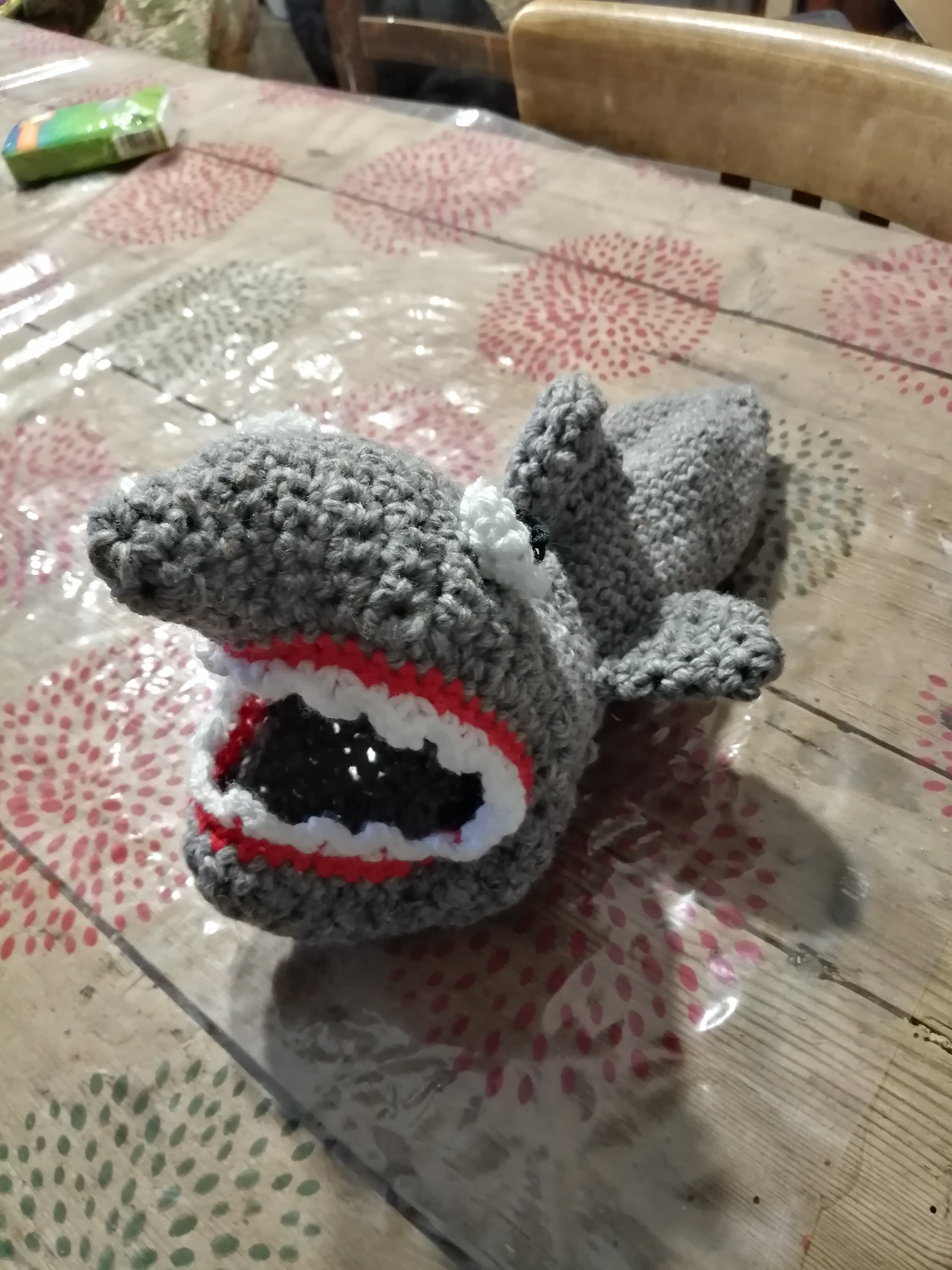Today was the inaugural meeting of knit and natter. There was only the two of us. However both of us know people who have said that they will probably come next week. I have finished the first slipper. So one down, 5 more to go! People in the café thought it was great. I hope that the client does!