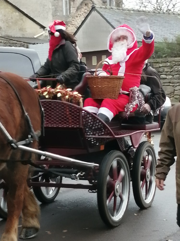 Father Christmas was seen in Huelgoat on the 23rd December, pulled by a Breton horse. It was a lovely sight. What’s interesting is that here Pere Noel brings sweets for the children but not presents as he does in the UK and other countries. It was rather useful when my husband was Pere Noel before Christmas, he didn’t need to know the names of toys in French!