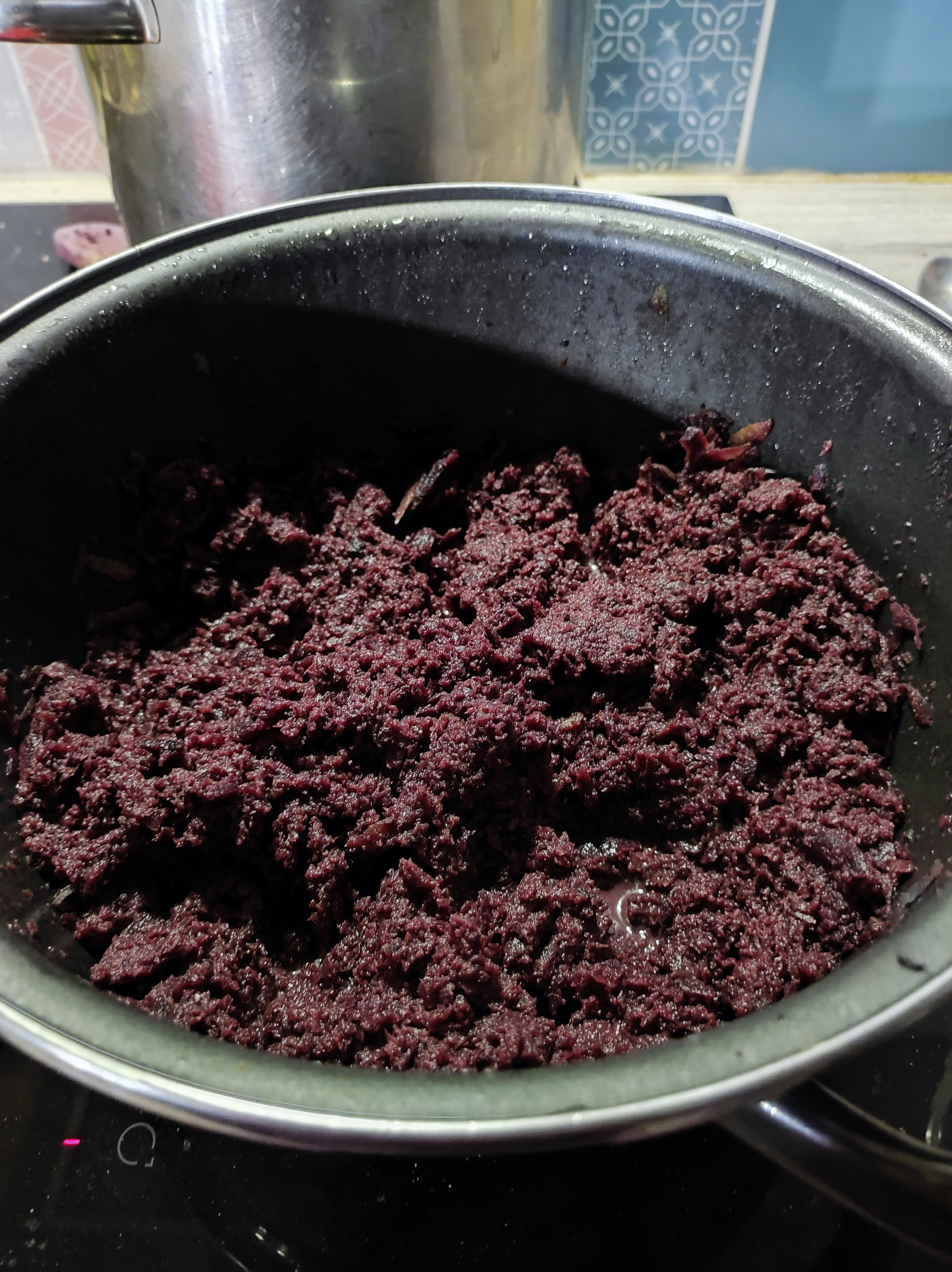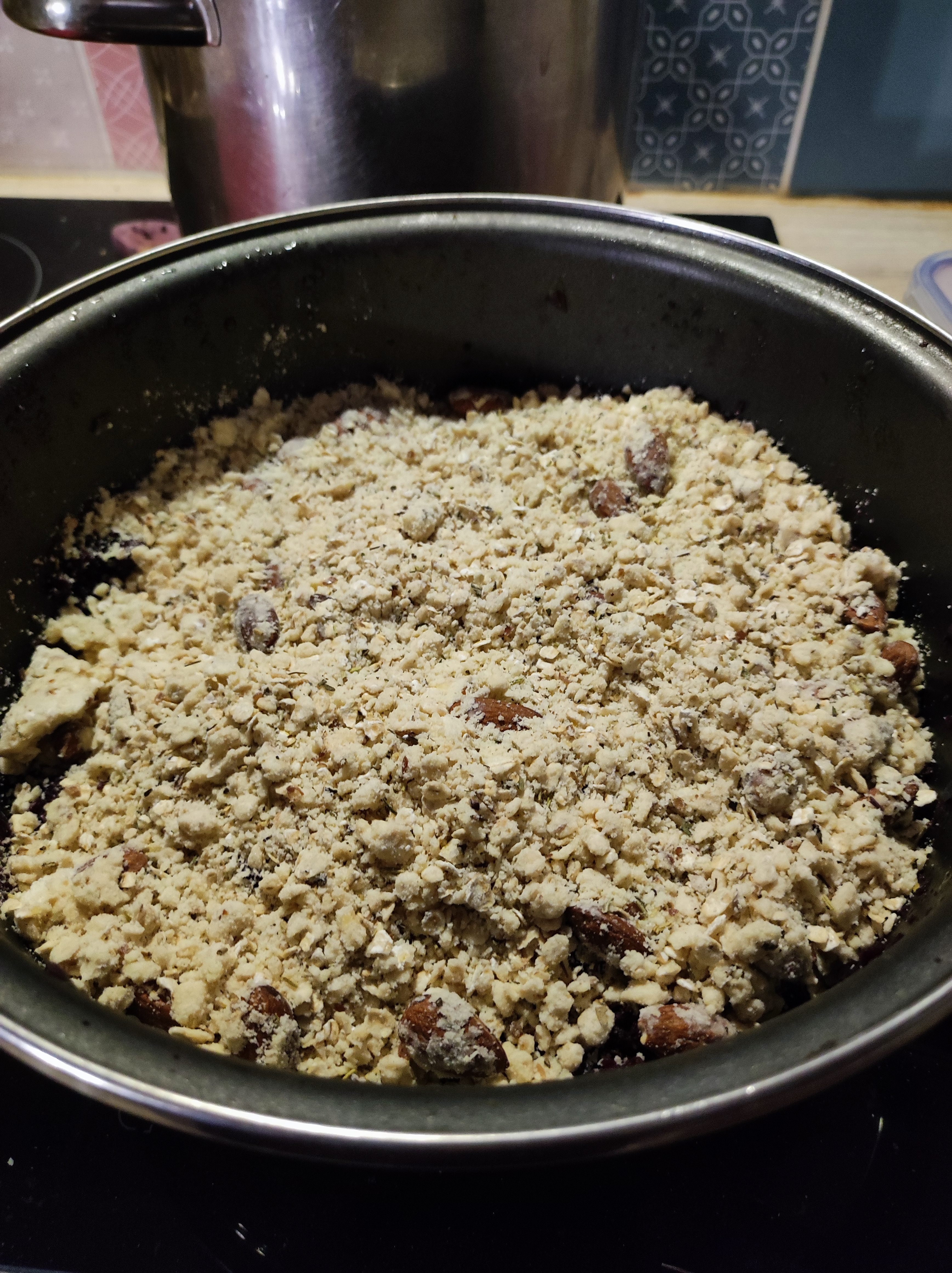 There is a vegetarian restaurant chain in the UK called Cranks. It initially started in London in the late 1960s. I have the original recipe book which I am very fond of. However as with many things in life I tend to adapt the recipes. Tonight’s meal is an adaptation of two of them with an added twist. One uses a carrot puree on the base and the other has a savoury crumble topping. Having carrots and beetroot left over from last week’s visit to the market it’s savoury carrot crumble this evening. The beetroot I had were golden, not purple but my carrots were purple. The resulting colour is incredible.
