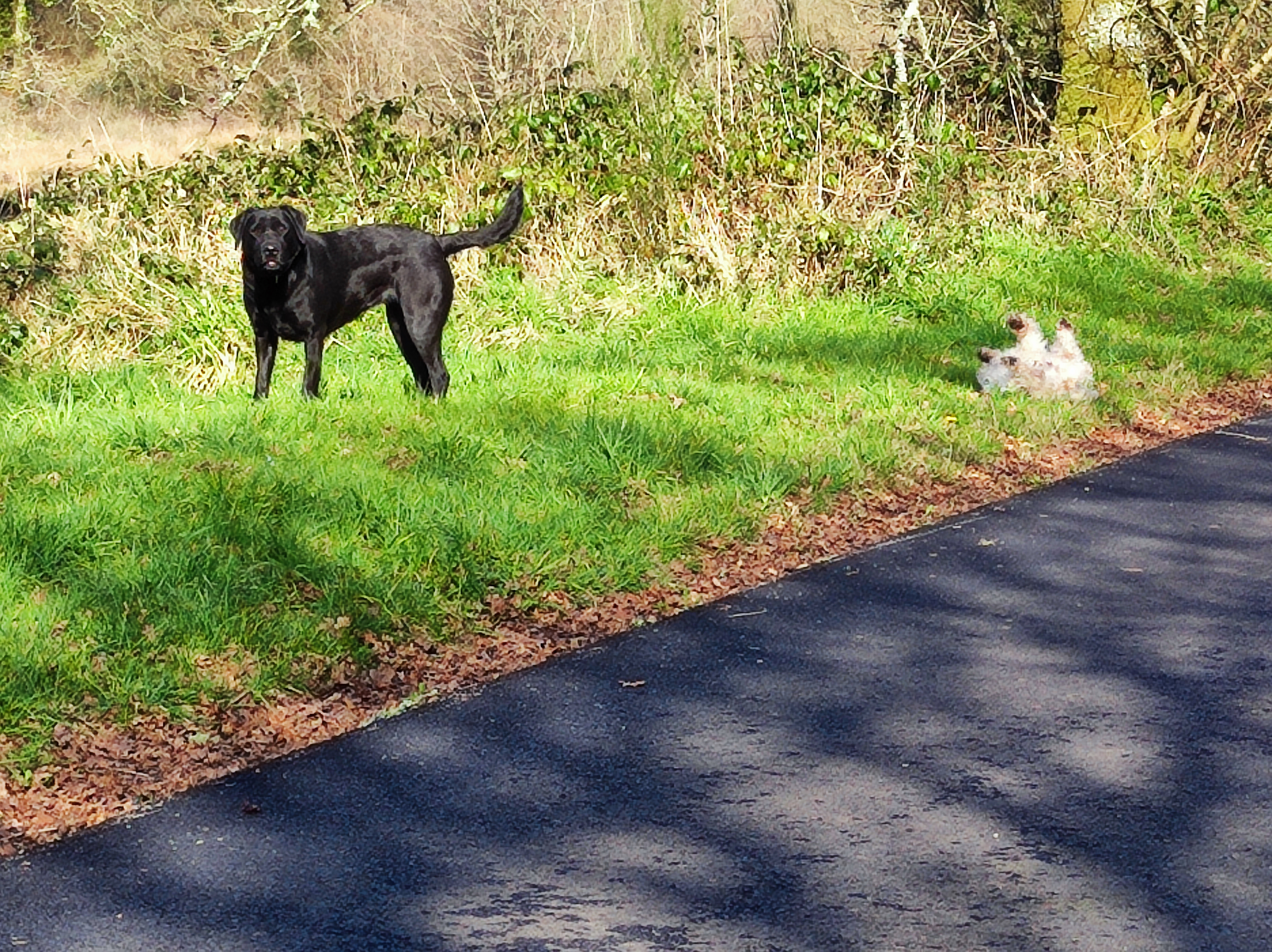 This afternoon I walked the dogs. The sunshine was absolutely glorious. It was lovely to see that there are beginning to be real signs of spring. I think that catkins are often considered to be such a sign, there is a tree nearby that is laden with them. The dogs also seemed to enjoy themselves. Nancy seemed particularly happy rolling in the grass.