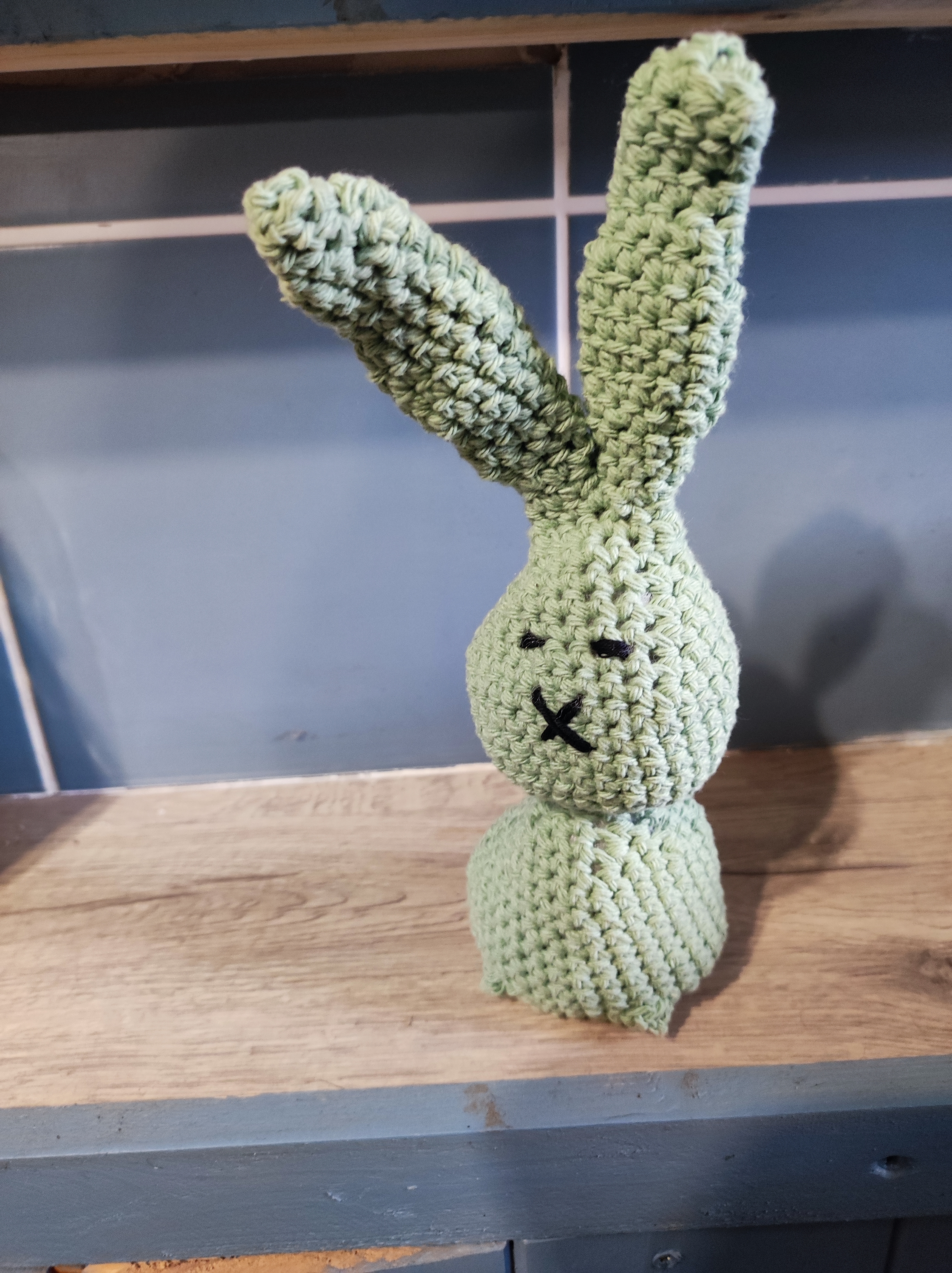 This afternoon I started on one of the bunny patterns. I have managed to finish the first one. It took little longer than I had hoped nevertheless I am pleased with how it has turned out. The pattern suggests that they should be made in pairs. I will see how that goes.