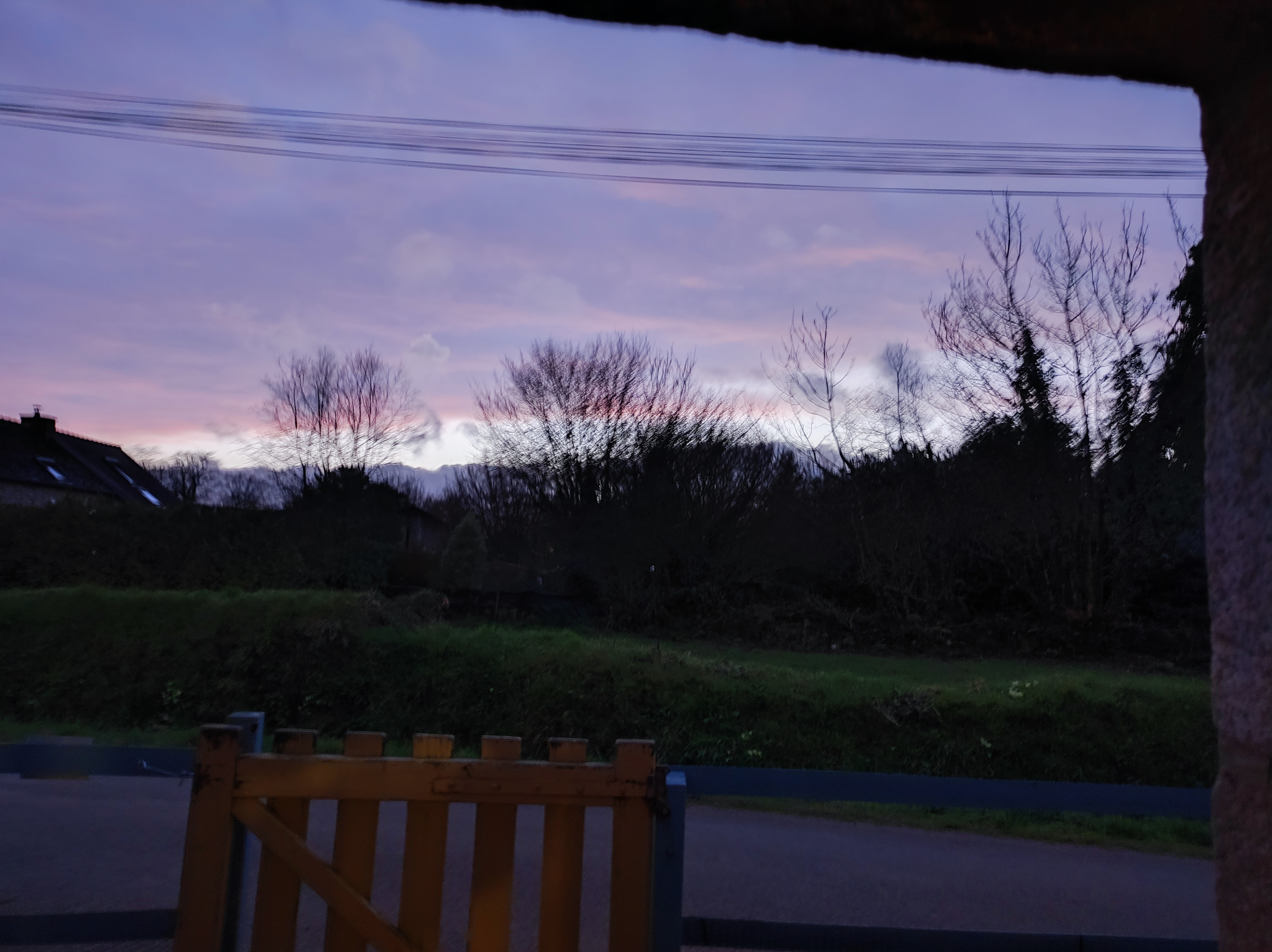 After dinner last night I noticed that there was an impressive pink sky. Unfortunately by the time that I photographed it, it was already a little dark. The savoury bread pudding however, was a hit. I will be making it again. So if you are interested this is how I did it.
