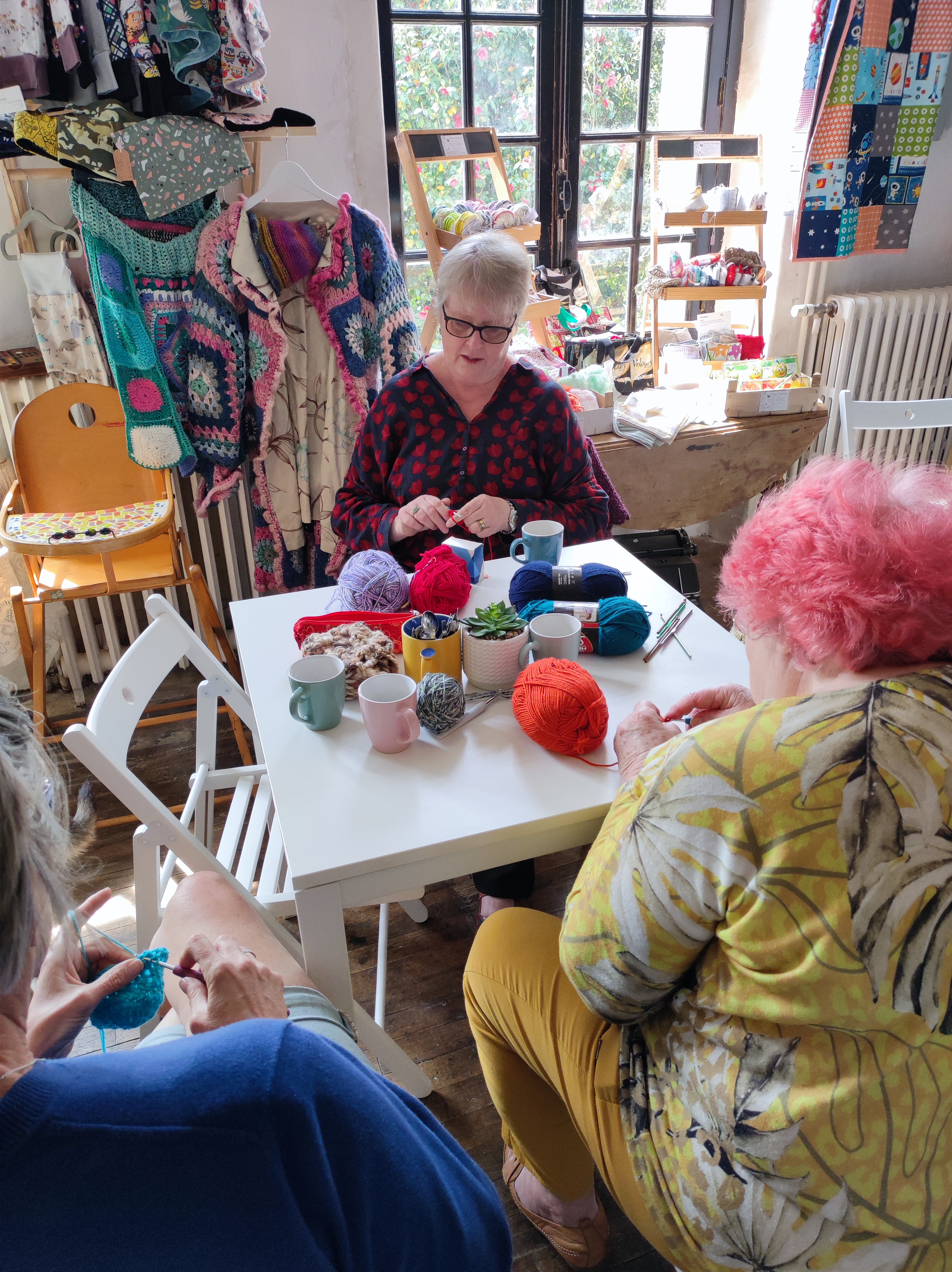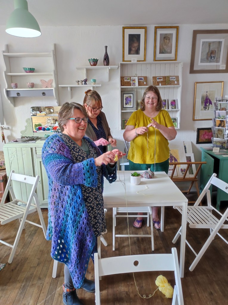 Today was about teaching crochet. I really enjoyed the experience and I have certainly taken something from the experience. I didn’t know how many people would arrive before the session. We had four learners which was good. Two were complete novices whilst two had some experience. One of the novices had previously been on a weekend workshop and had not learnt to crochet. She also commented that there were people at the workshop whose attitude was prickly, they clearly looked down on some people who were participating. So, we can say that she didn’t arrive with high expectations. However, by the end of the afternoon she was crocheting. The other novice was really concerned that because she is left-handed that she wouldn’t be able to learn either. I am so thrilled that they are both able to do something and are developing some confidence in their skills.