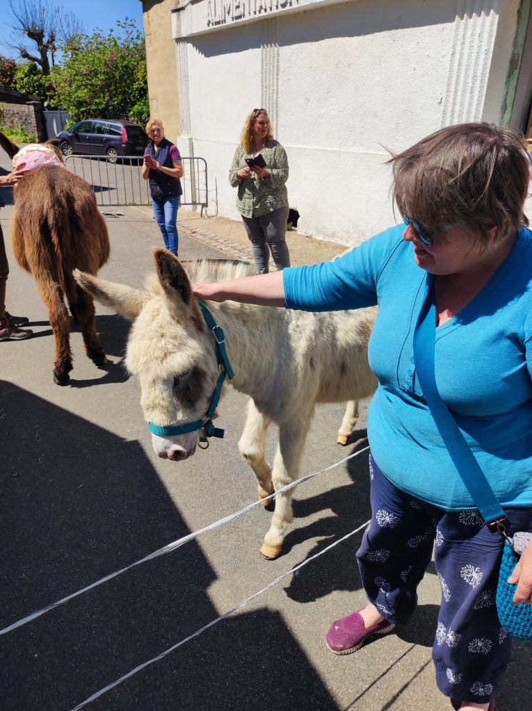 Yesterday afternoon was Donkey day at Les Puces. Apparently the 8th May is World donkey day. Given it was me that suggested that Les Puces celebrate it, the least I could do was to go along. I have a real soft spot for donkeys, so it was lovely to see them. The day was a success and plenty of money was raised both for the donkeys and for Les Puces.