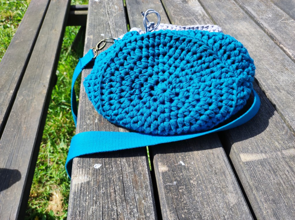 At the end of last week I was suddenly struck by the drive to make a bucket bag style handbag. I have had some ribbon yarn for at least a year. I can’t remember what I thought I was going to do with it. However, I thought it would be the perfect yarn for my project. I didn’t have a pattern so I had to frog-it a couple of times. I often find with crochet that something starts looking too small and before you know it, it’s too big. This was certainly the case with the bag. However over two evenings I managed to finish it. I bought a metal clasp and attached it. I need to do that again because I didn’t secure it sufficiently. I am pleased with it though.