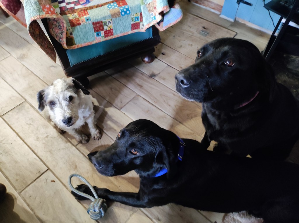 Whilst I was in Carhaix I visited the pet shop. All three dogs were in need of new collars, so that was my next stop. I was concerned about taking all three into the shop at once. I am pleased to say that they behaved and I was able to fit each one with a collar.