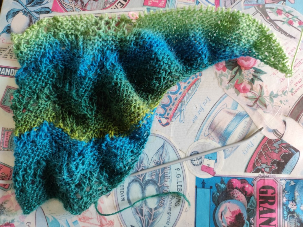 Knitting and crochet allow me moments of Engagement and a sense of creativity. My current knitting project requires a level of concentration because whilst it is a repeating pattern, it repeats over 15 rows and grows by one stitch every other row. So whilst I am working on it, the rest of the world is floating by. Which brings me back to Chandi. In her vlog she mentioned the work of an author, Michael Singer, who writes about, meditation, mindfulness and concepts of self. Her description of one of his concepts of observing and allowing things to pass, chimed with the work I have done with my mindfulness coach. So later I am off to look for his work. It sounds as though it may be interesting.