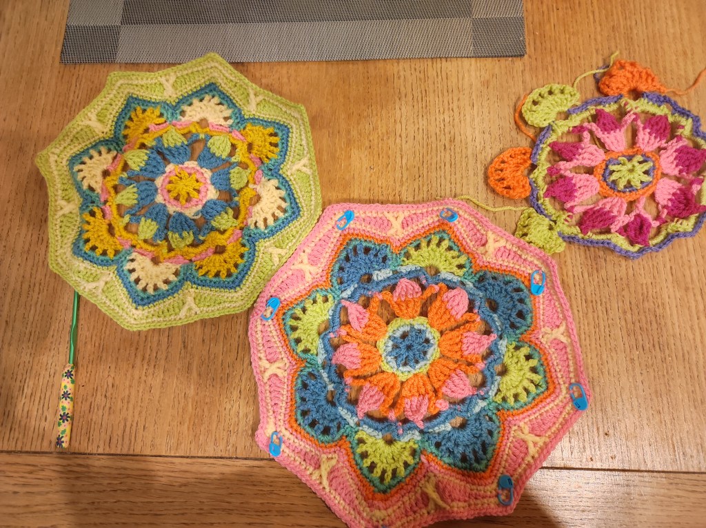 Over the weekend I also started a new crochet project. I am close to finishing the advent calendar, however I need some stuffing for some of the ornaments. Given I have a huge bag of it at home in France, I am not willing to buy any here. So I’ve started a new throw.