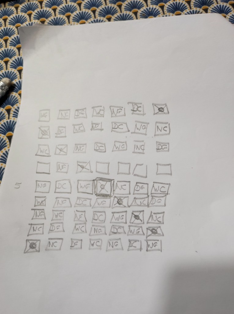 I drew out all of the blocks earlier but suddenly the pattern didn’t appear to work in one of the rows. So now I have the builder working on it! I think he is a little concerned by my pattern. He is drawing it out again as I am writing. I was sure I had it right, so I’m really not sure what I did wrong. Hopefully I’ll know soon!